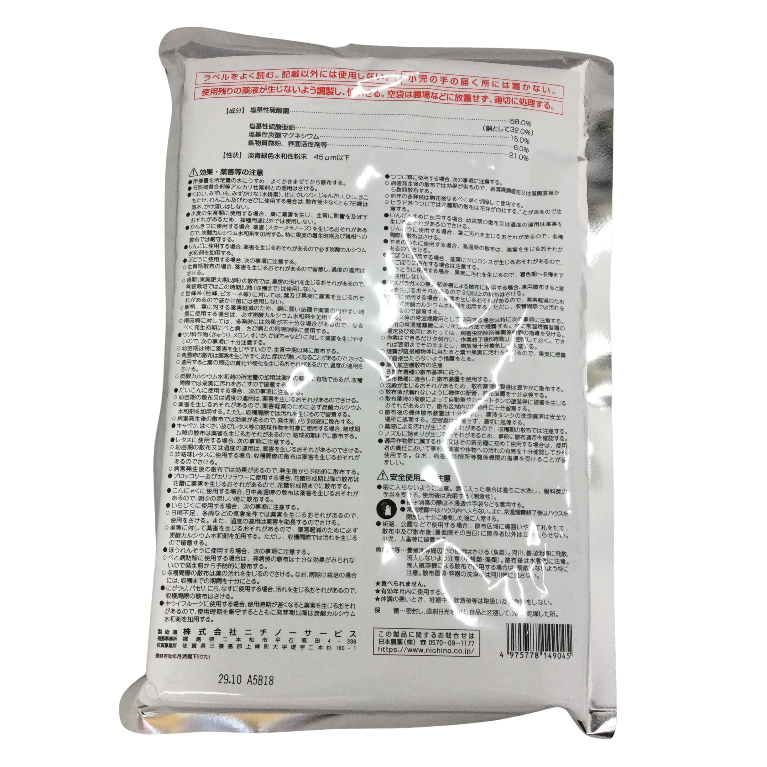 ・無機銅剤(塩基性硫酸銅)であり、糸状菌病害から細菌性病害まで幅広い病害に有効である。また、野菜類登録を有しているなど多くの作物へ適用を有する。